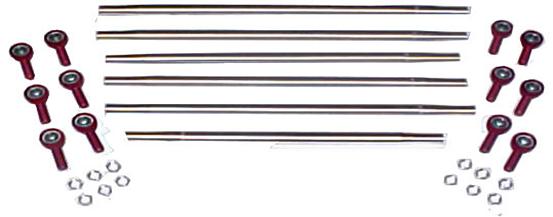 This radius rod kit features only Made in the USA parts. Includes 3 front rods, 2 rear rods, 1 panhard rod, 12 FK heims, and 12 jam nuts.